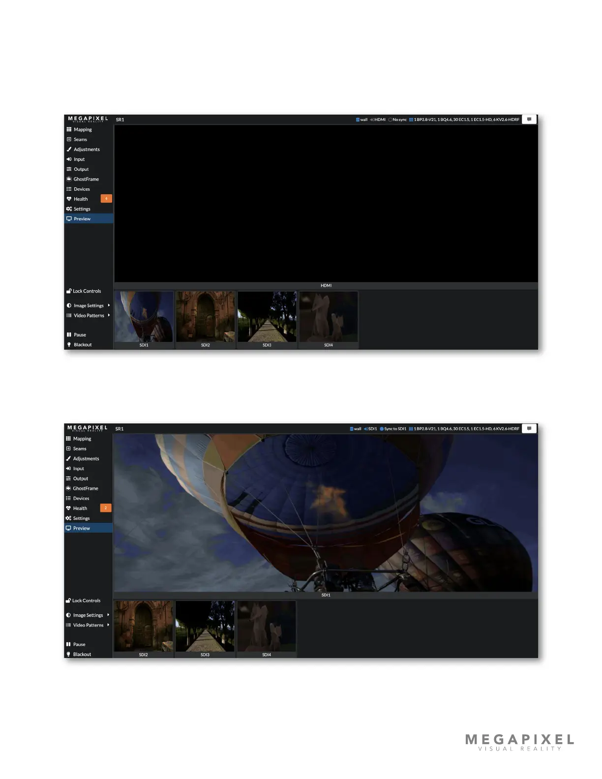 In the example below SDI 1 has been selected as the input. The preview pane shows SDI 1 maximized at the top. Other