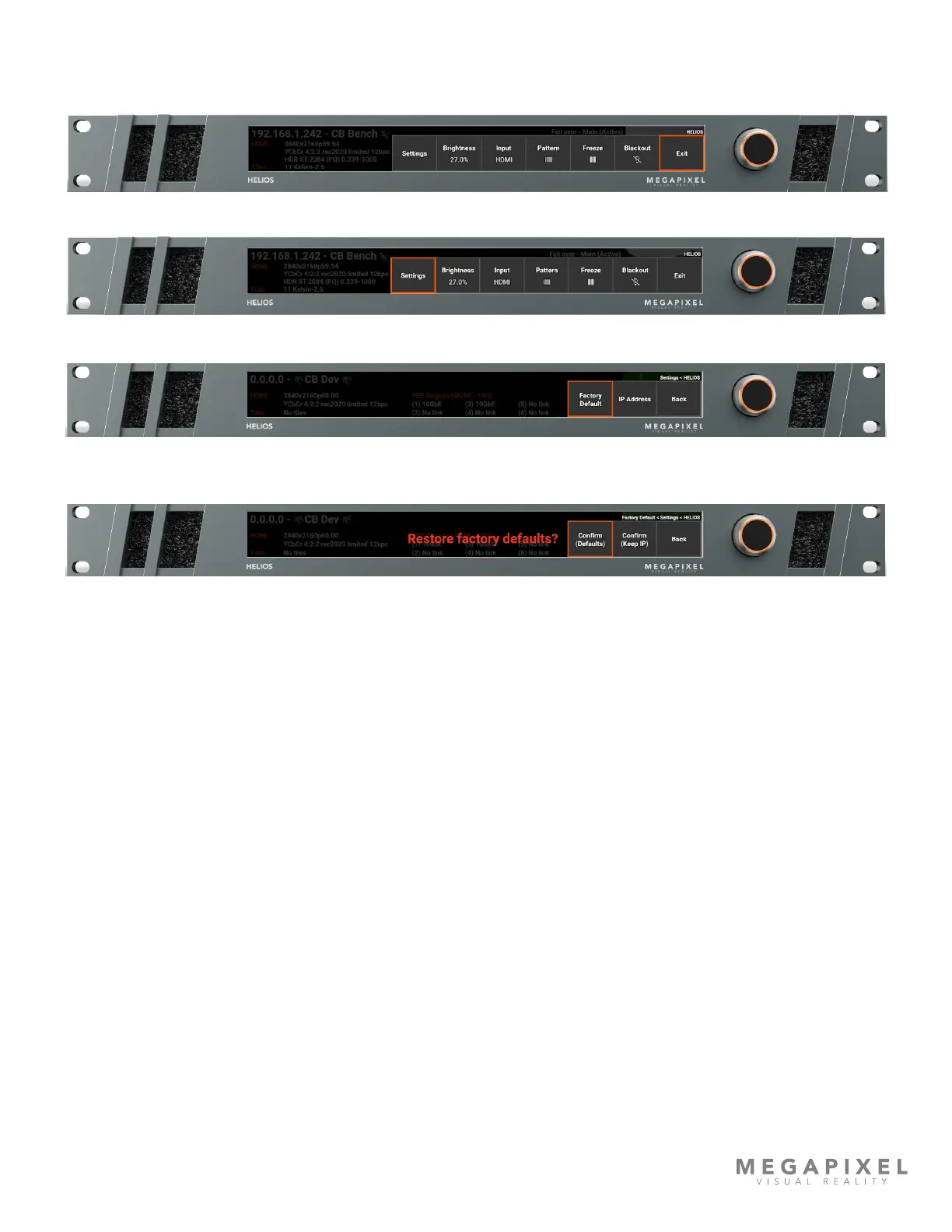 4. Conrm the selection reset to factory defaults. The HELIOS will reboot.