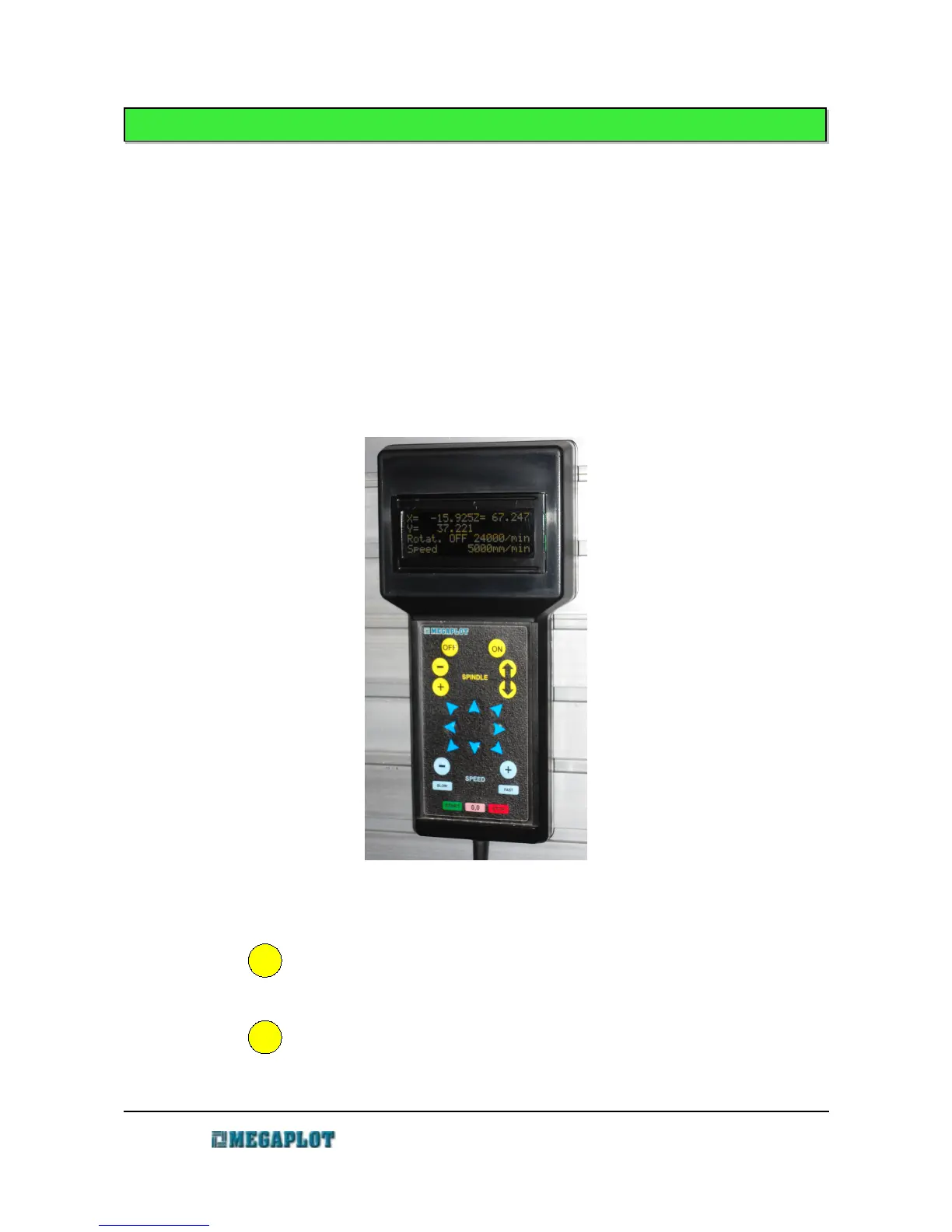 The wire remote control can be used to manually control the machine in each axis, turn the