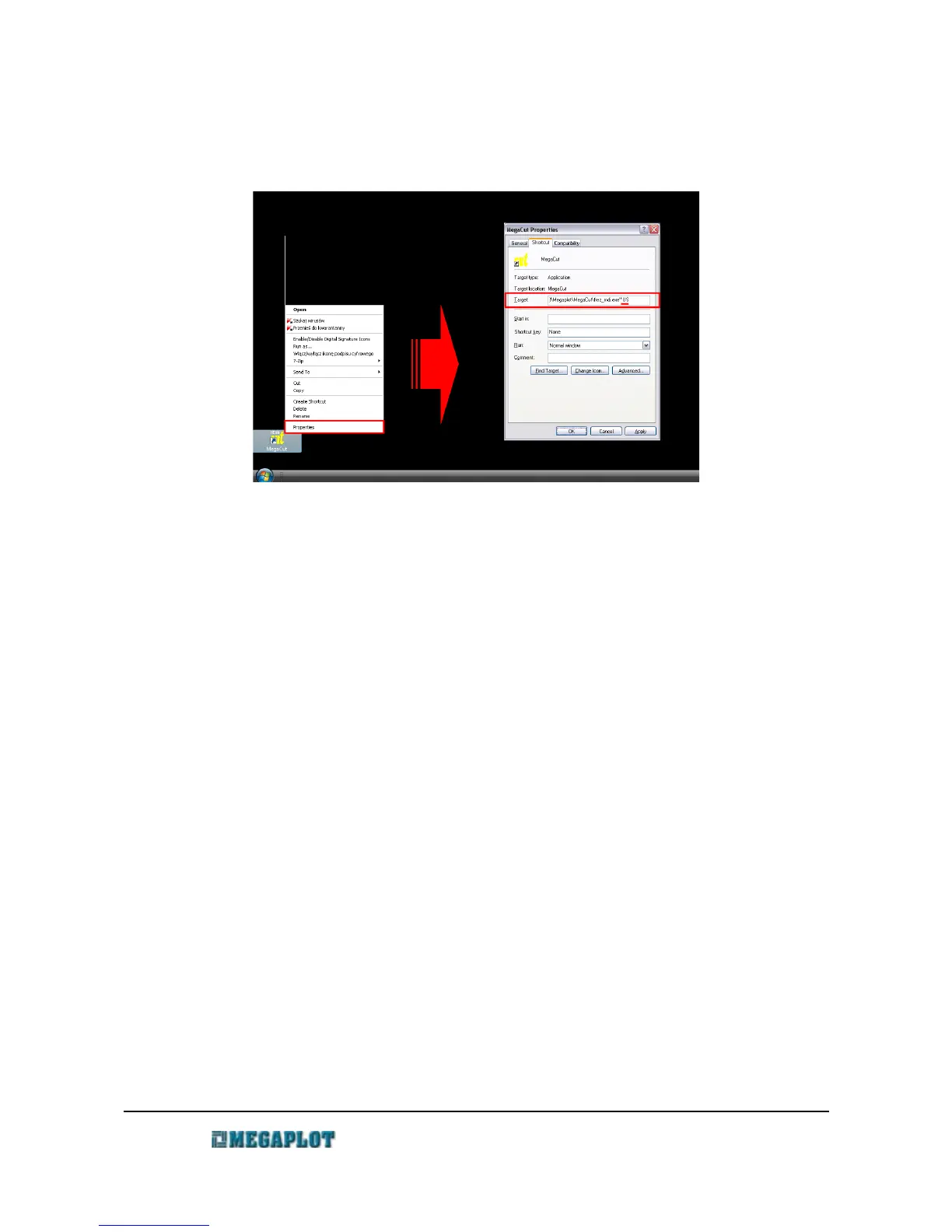 need to modify the MegaCut shortcut icon located on your PC desktop.