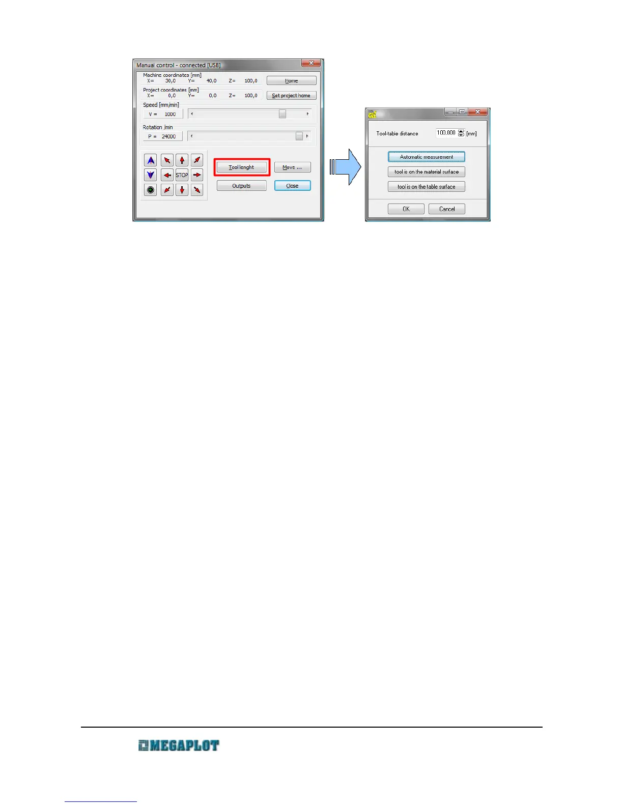• open Manual Control and Tool Length