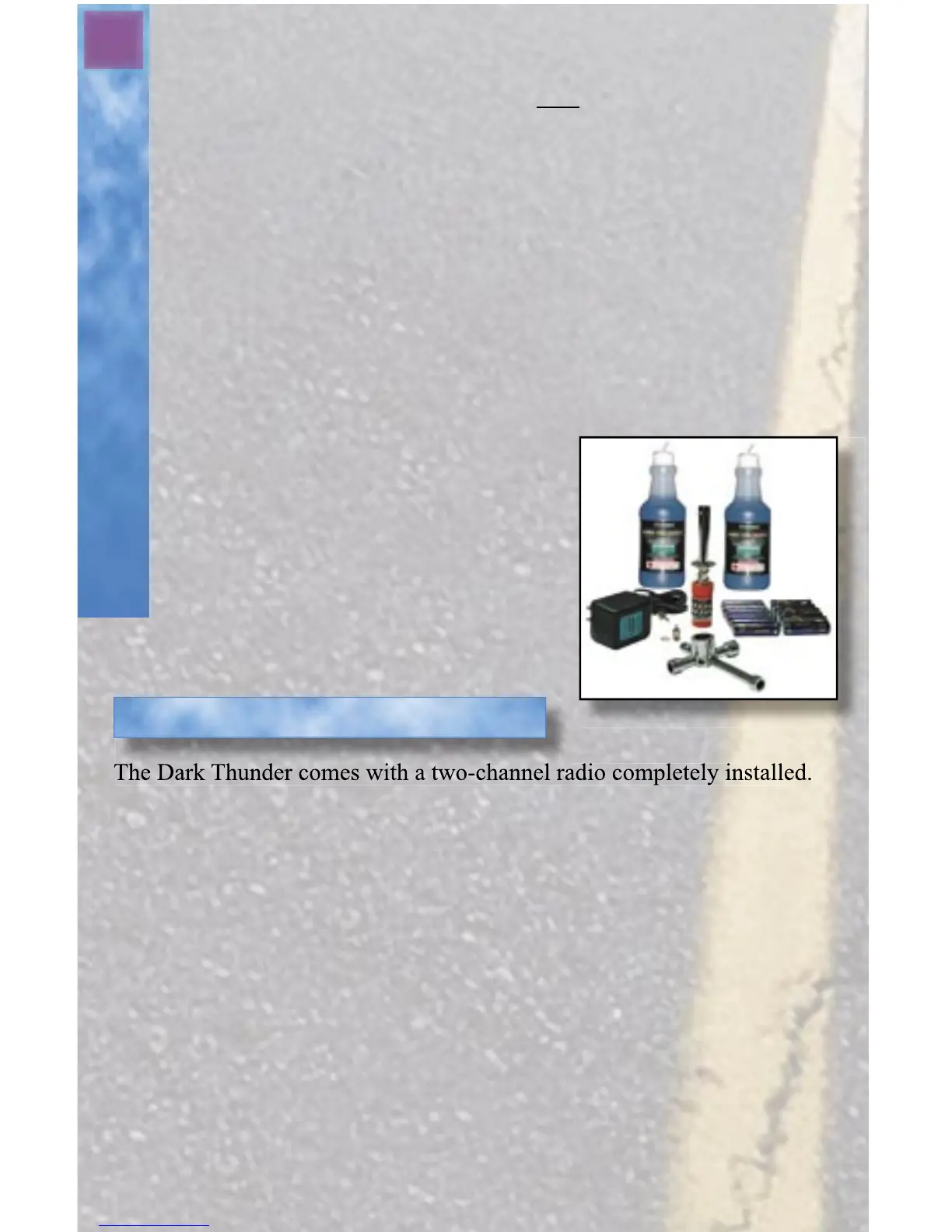 To operate your Dark Thunder, you will need the following items,