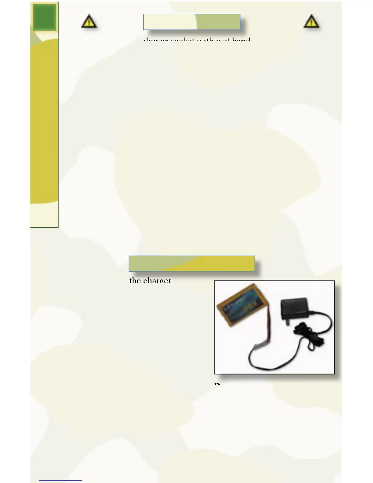 • Insert the charger plug into a household