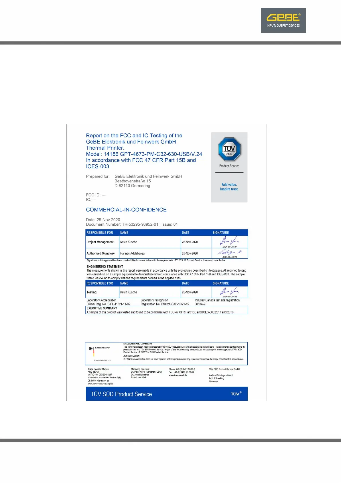 Following printers have been tested in accordance to: (test certicates on request against NDA)