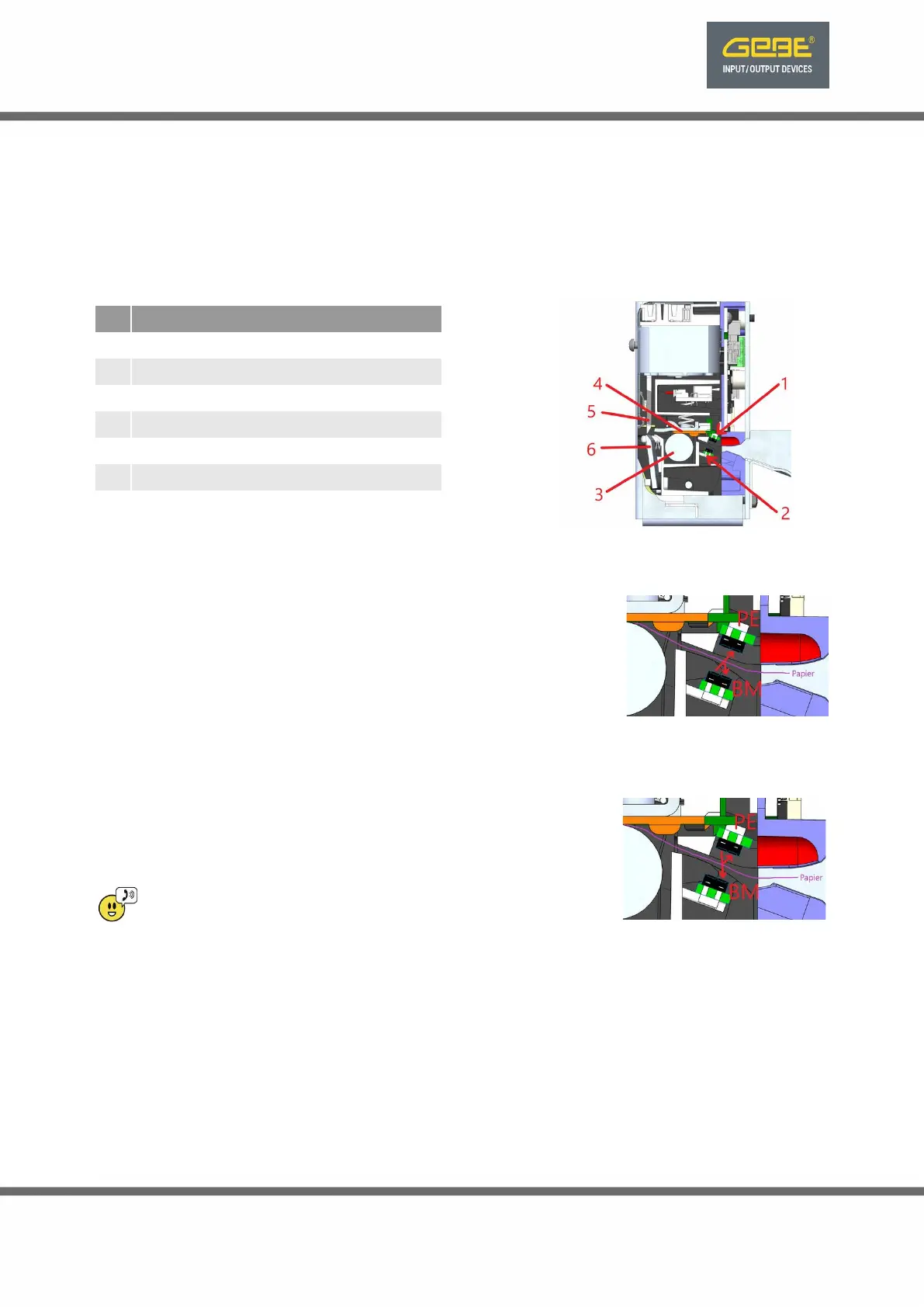 The Paper End Sensor (PE) works as a reflex sensor, the blackmark Sensor (BM),