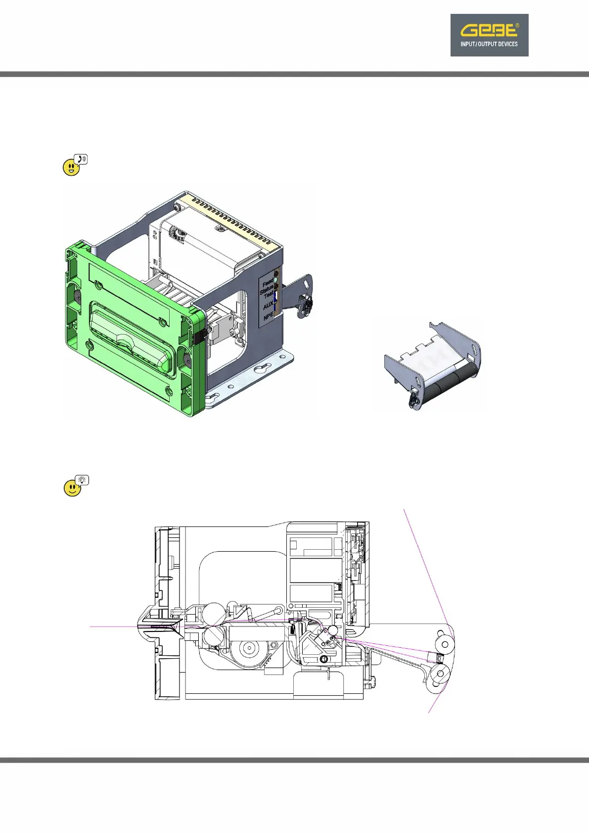 The paper guide can be equipped with a tensioner. The tensioner can be installed in the upper or lower position. It is for a