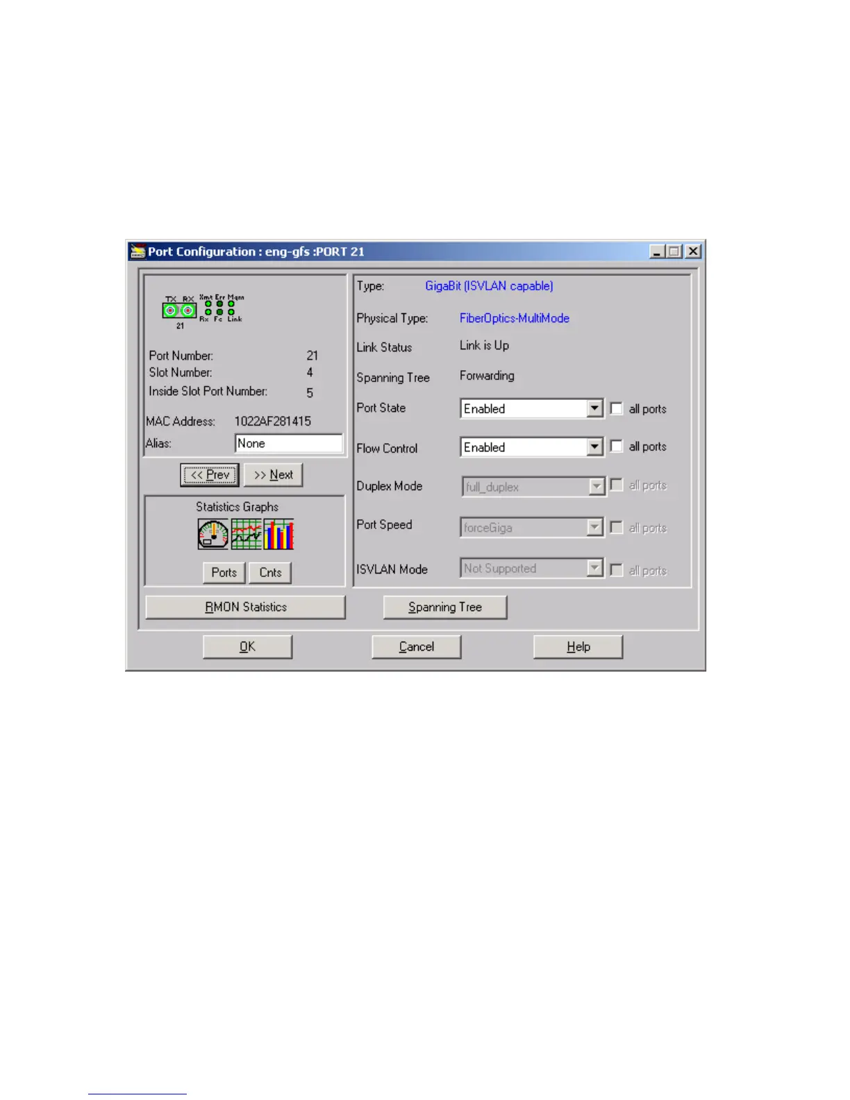 have a common set of features as can be seen in the following Port Configuration window.