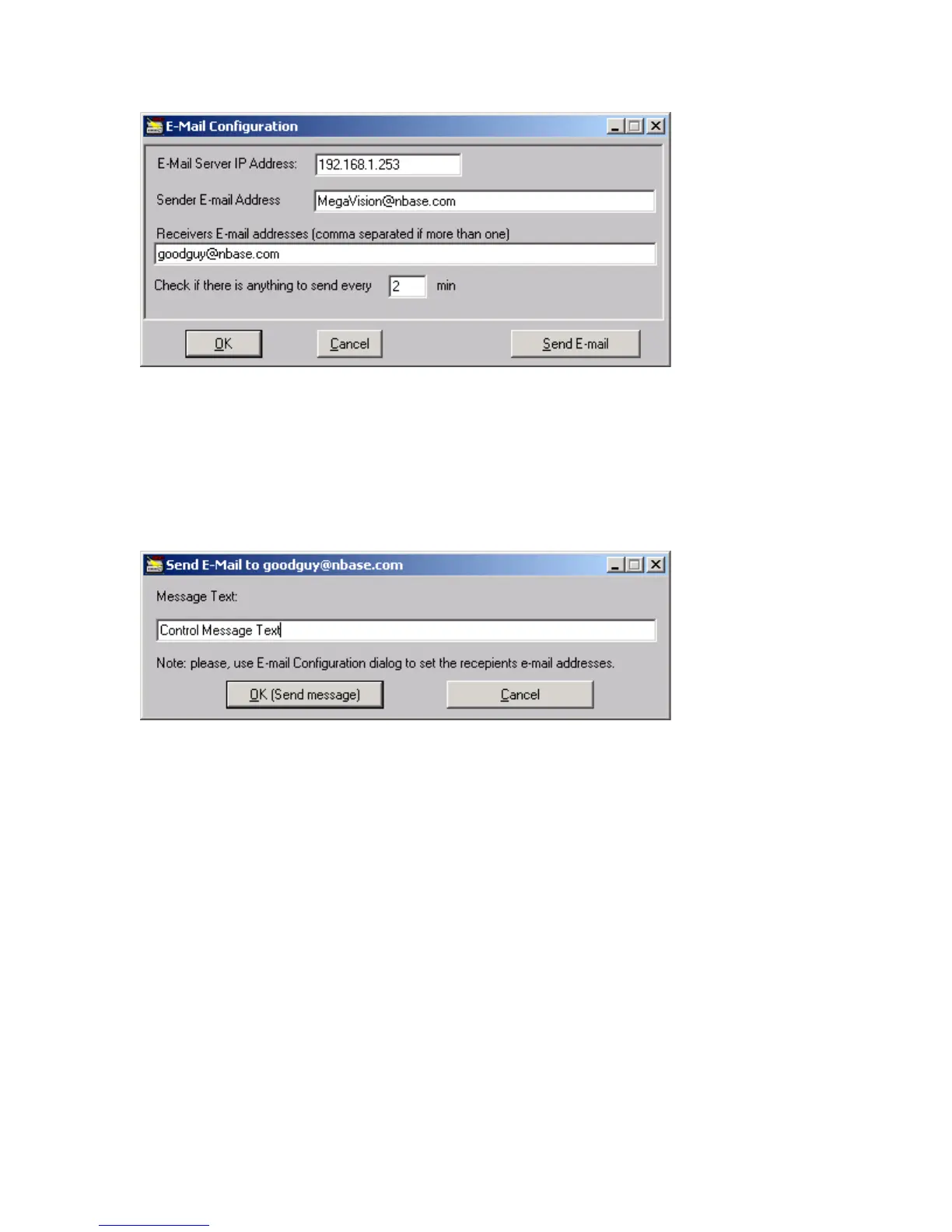 After setting the necessary E-mail Configuration parameters you may send the control E-