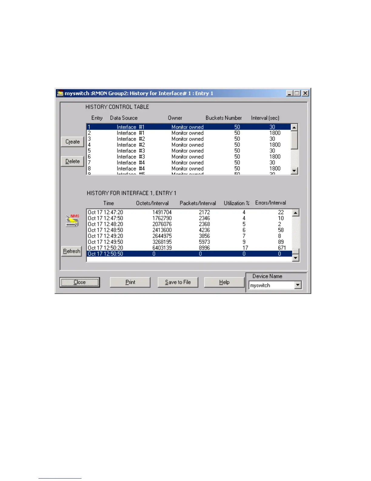 • RMON Group 2 is supported but there are no control entries. You can create a control