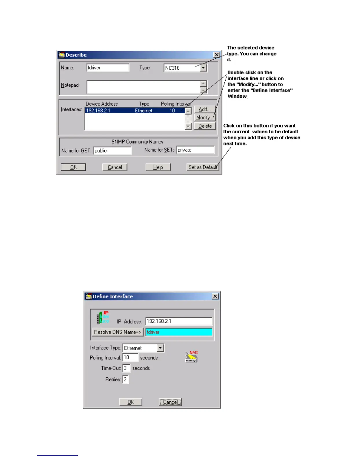 8. To define new interfaces choose Add in the Describe window. You may also modify