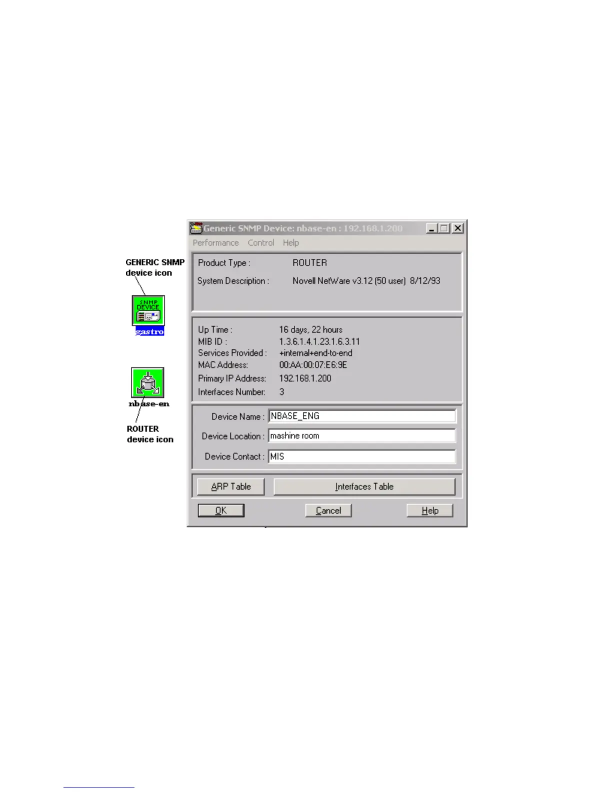 Figure 44. GENERIC and ROUTER device icons and GENERIC SNMP