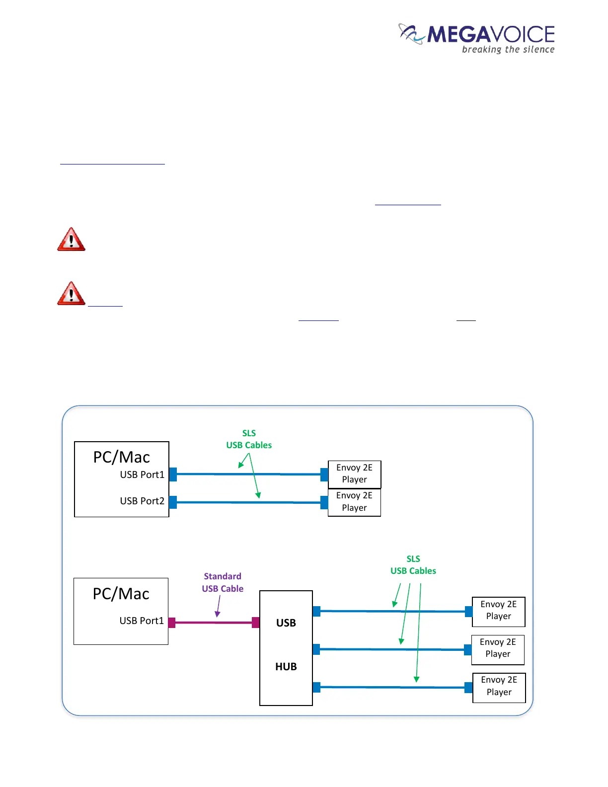 USB expansion HUB. MegaVoice recommends using USB 2.0 (or higher) powered HUBs, each directly