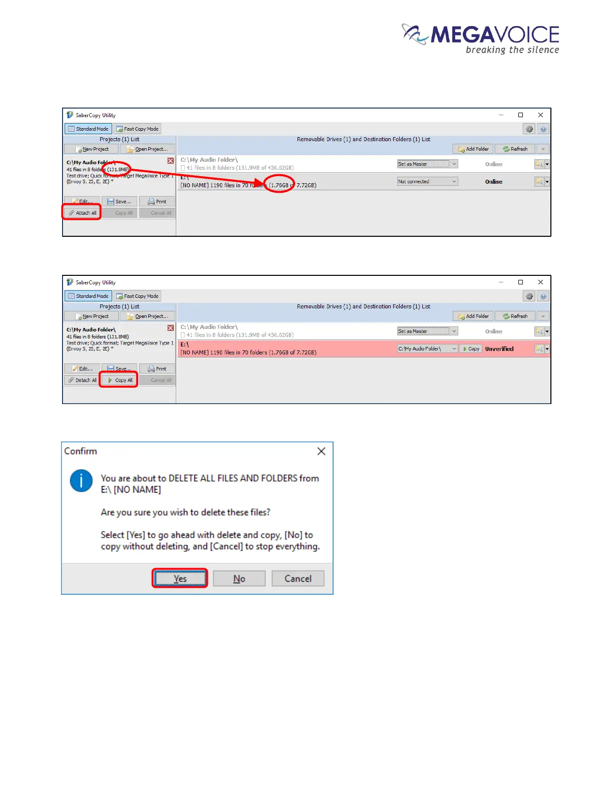 8. Take a moment and make sure your audio will fit on the target player. Then click “Attach All” in the project
