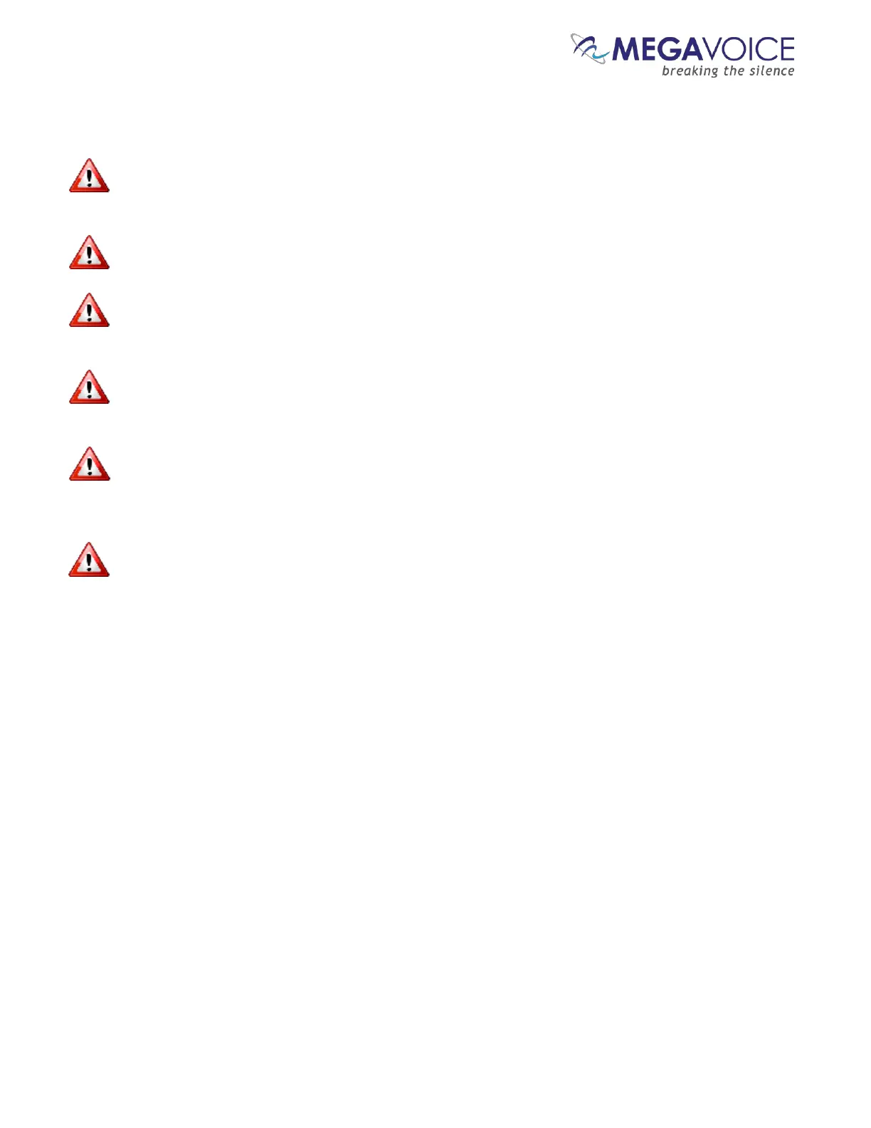Changes or modifications not expressly approved by MegaVoice could void your authority to operate this device.