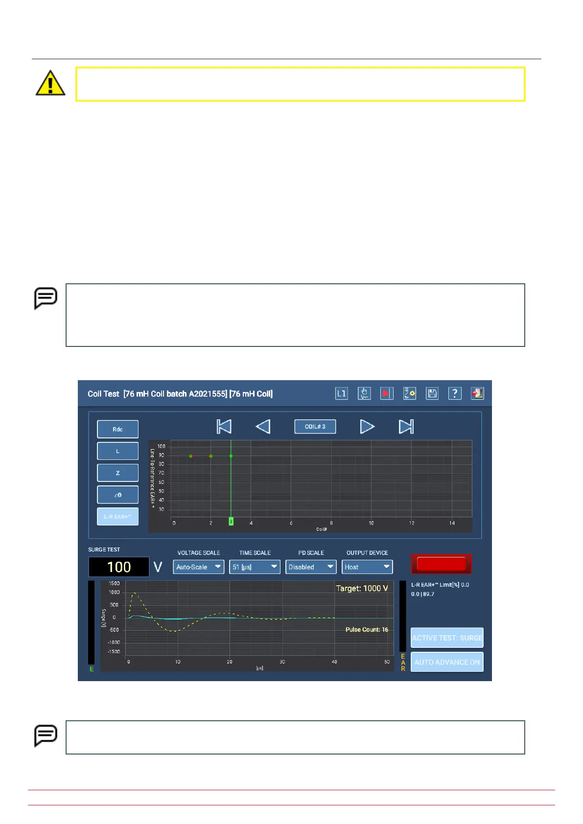 11. Change test leads after each surge test completes and repeat until all coils have been surge tested.