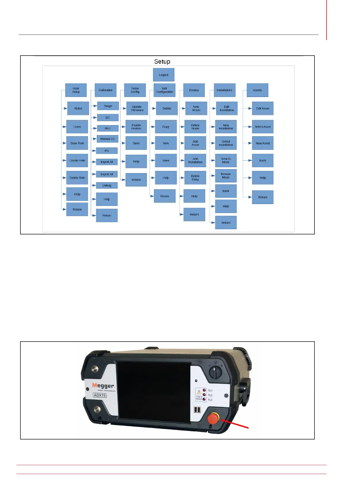 Fig 145: Megger Baker ADX showing Equipment Stop button.