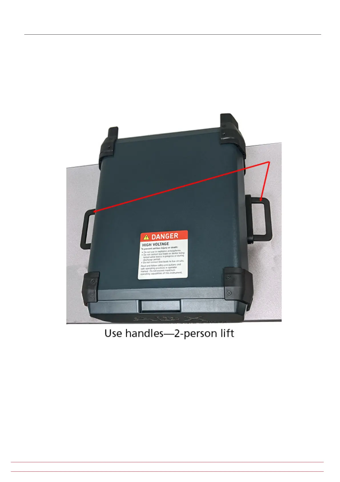 Remove tripping hazards test leads, power cord, and all accessories before lifting. The front cover should also be in
