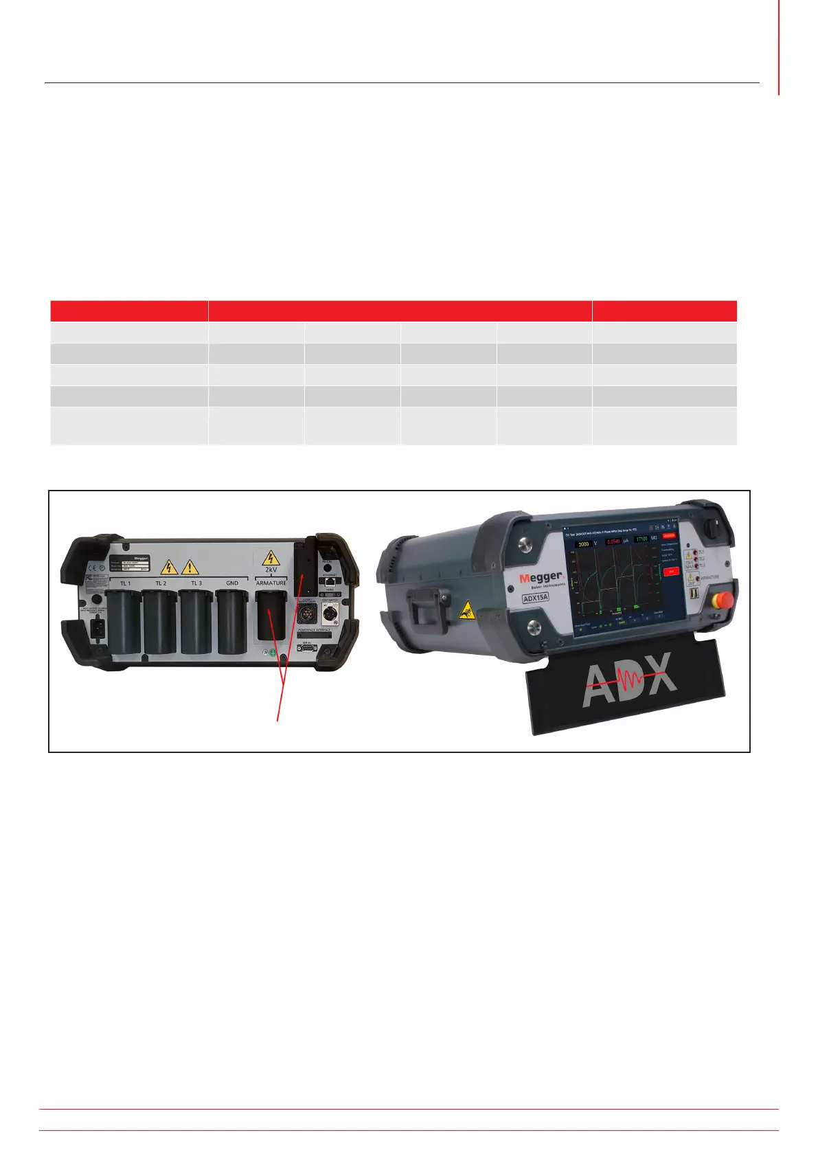 The Megger Baker ADX series includes five models as listed in the table below.