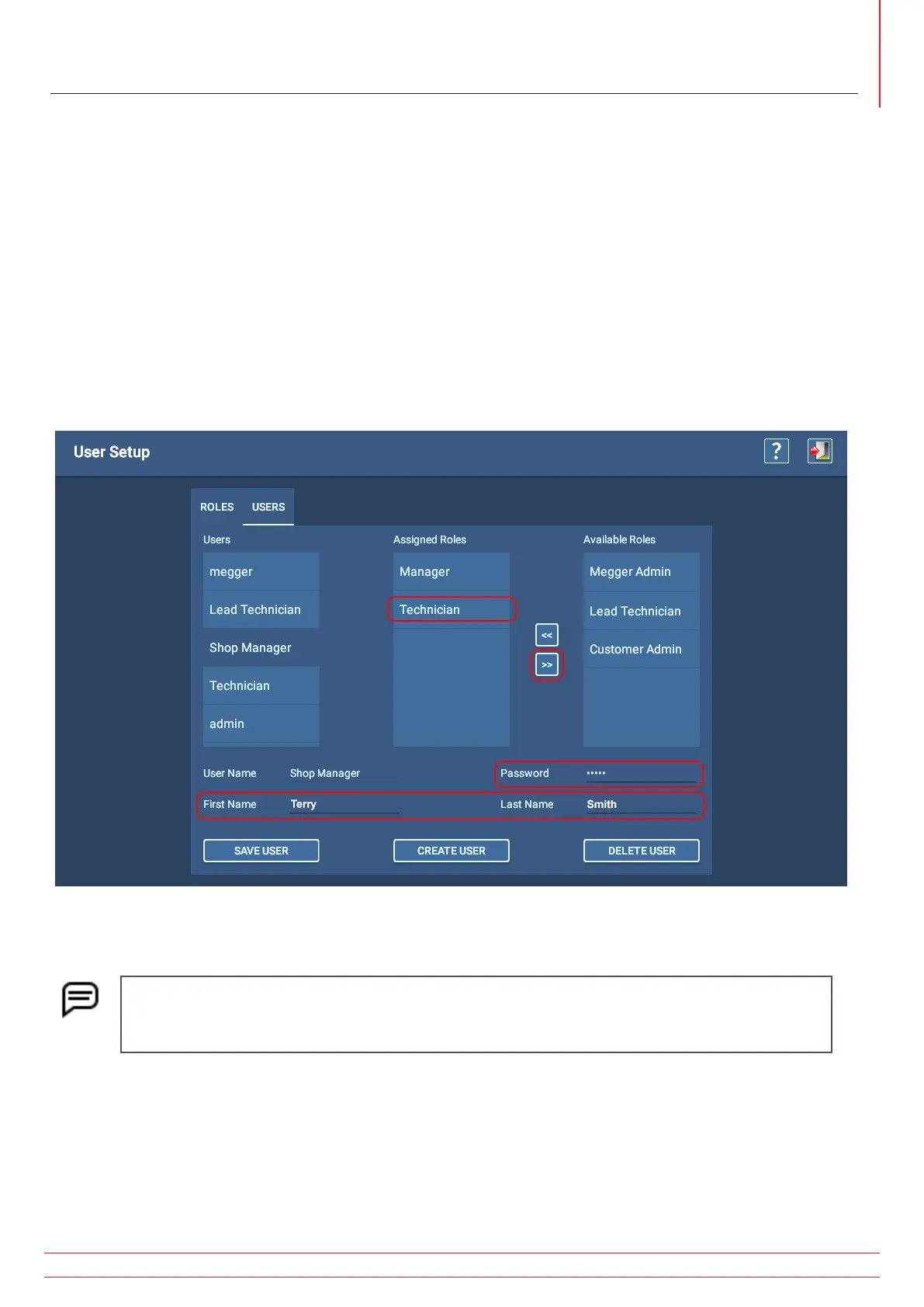 NOTE: Admin roles cannot be assigned to users. Administrator roles and users are created at the factory