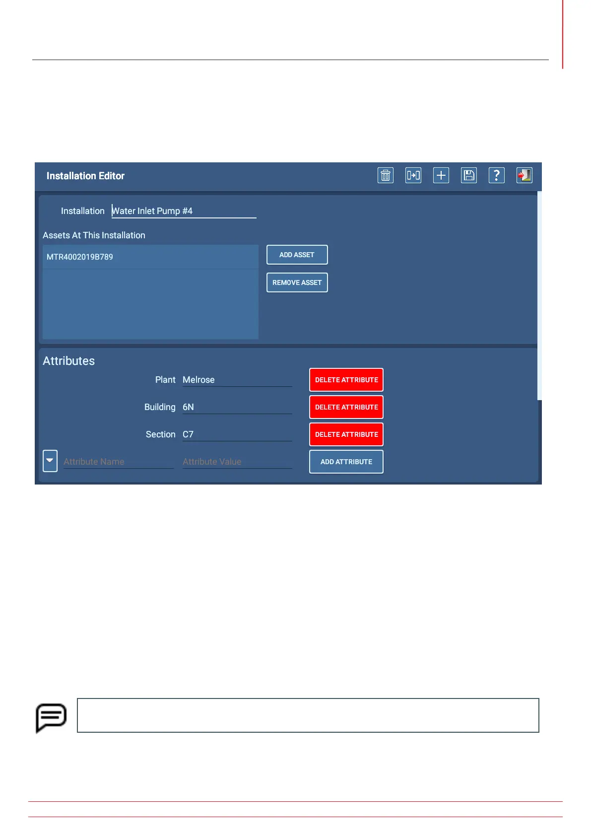 The Installation Editor is used to assign assets to specific installations, and to provide additional information—via