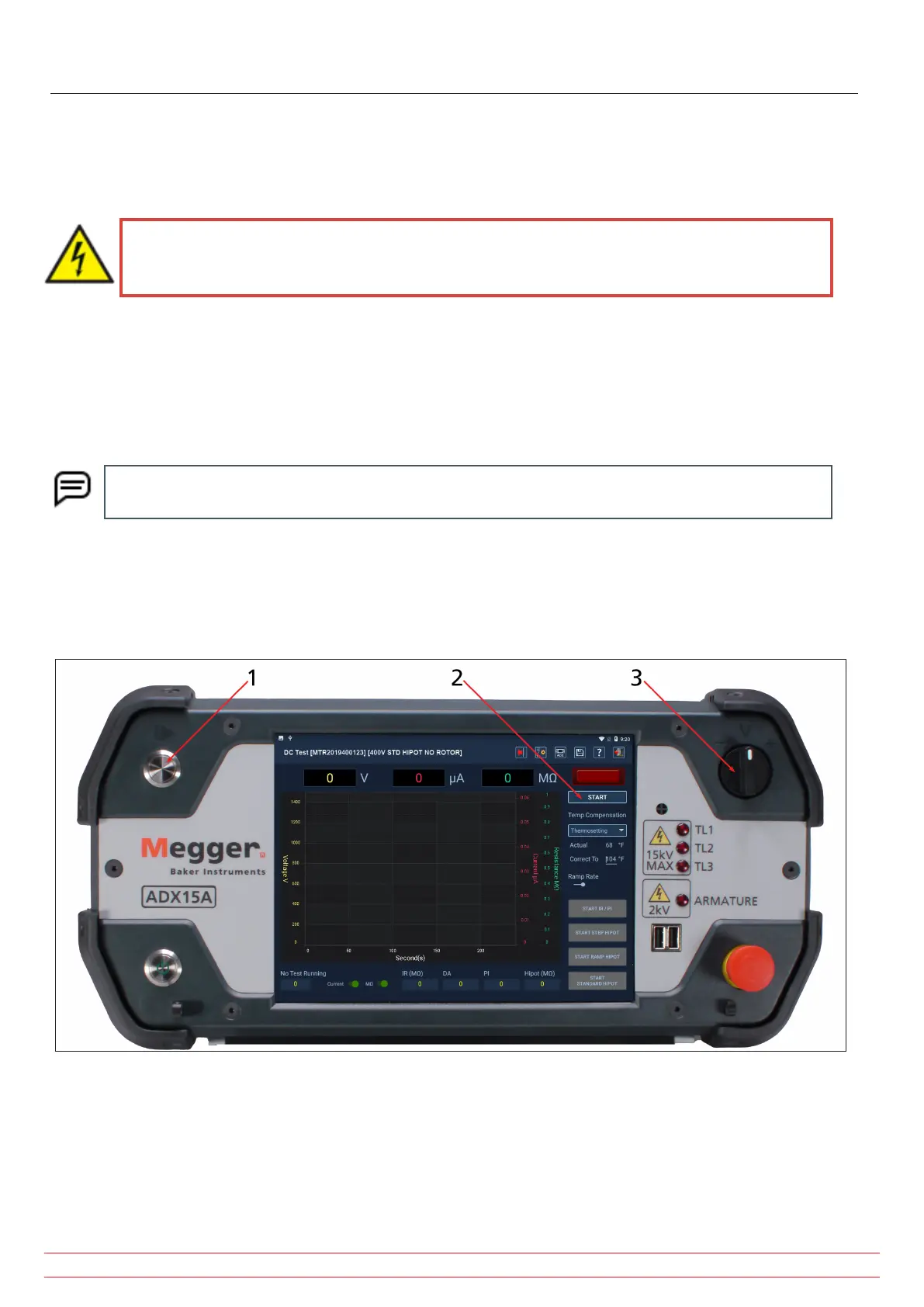 and Discharge after Conducting DC Tests” in chapter 1, “General Operating and Safety