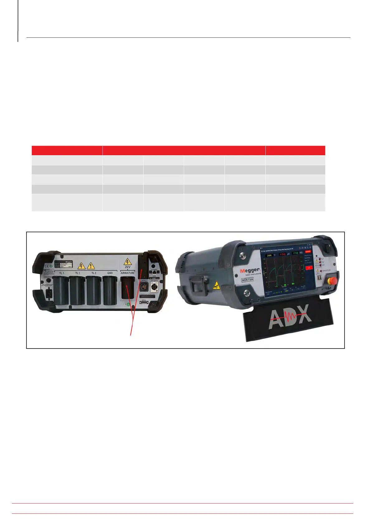 The Megger Baker ADX series includes five models as listed in the table below.