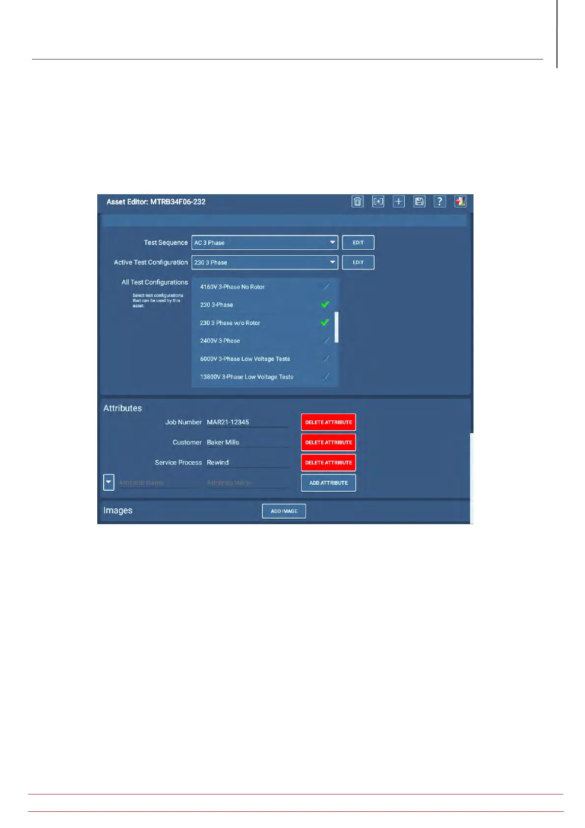 Refer to the Megger Baker ADX User Guide for more information on all Asset Editor functions.