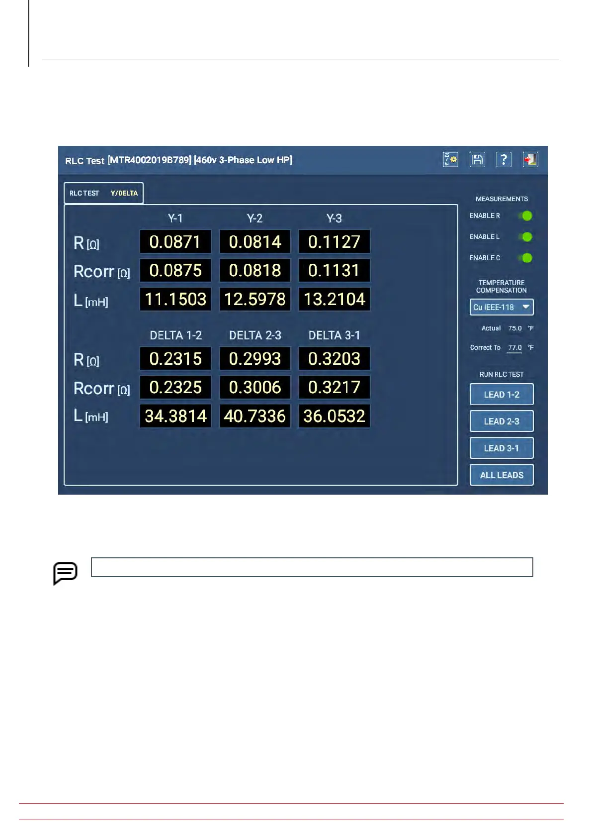 Fig 45: Manual Test—RLC Y/Delta tab.