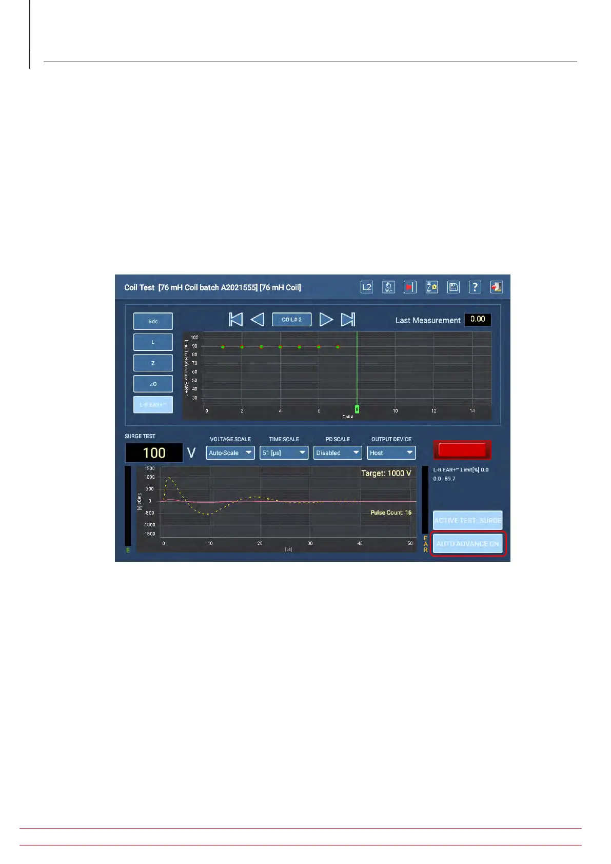 advance to the next coil automatically. If AUTO ADVANCE is OFF, and this number is not advanced after a test,