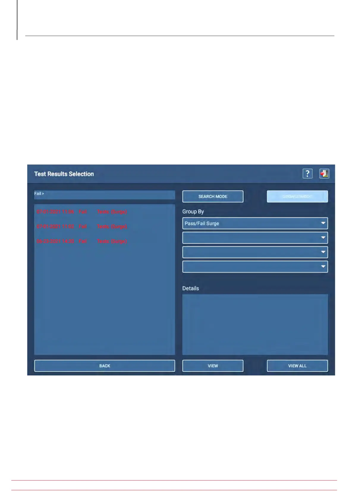 Fig 67: Test Results Selection; Browse Mode example.