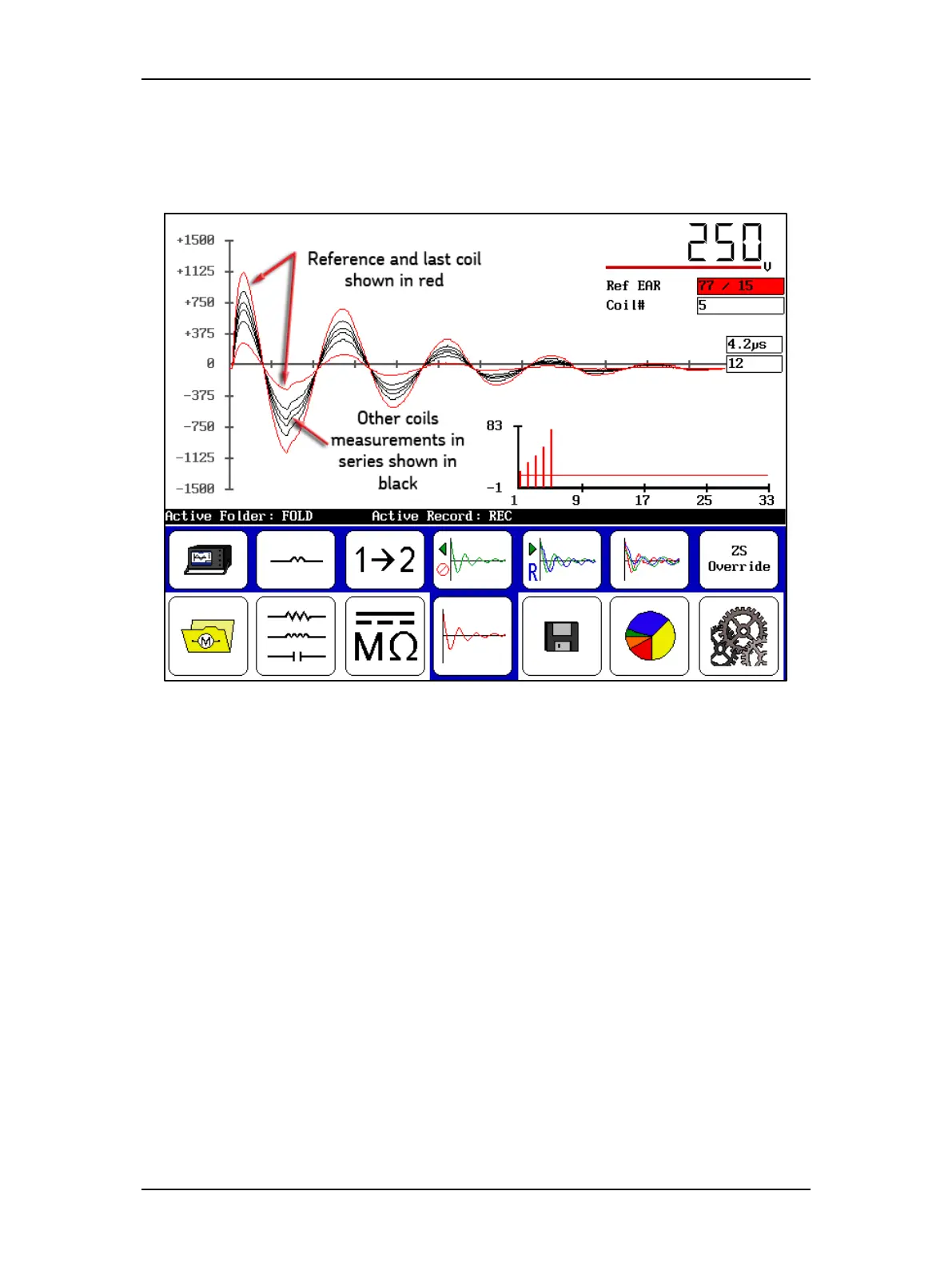 Figure 115. Single-coil test results screen—All Waveforms selected.