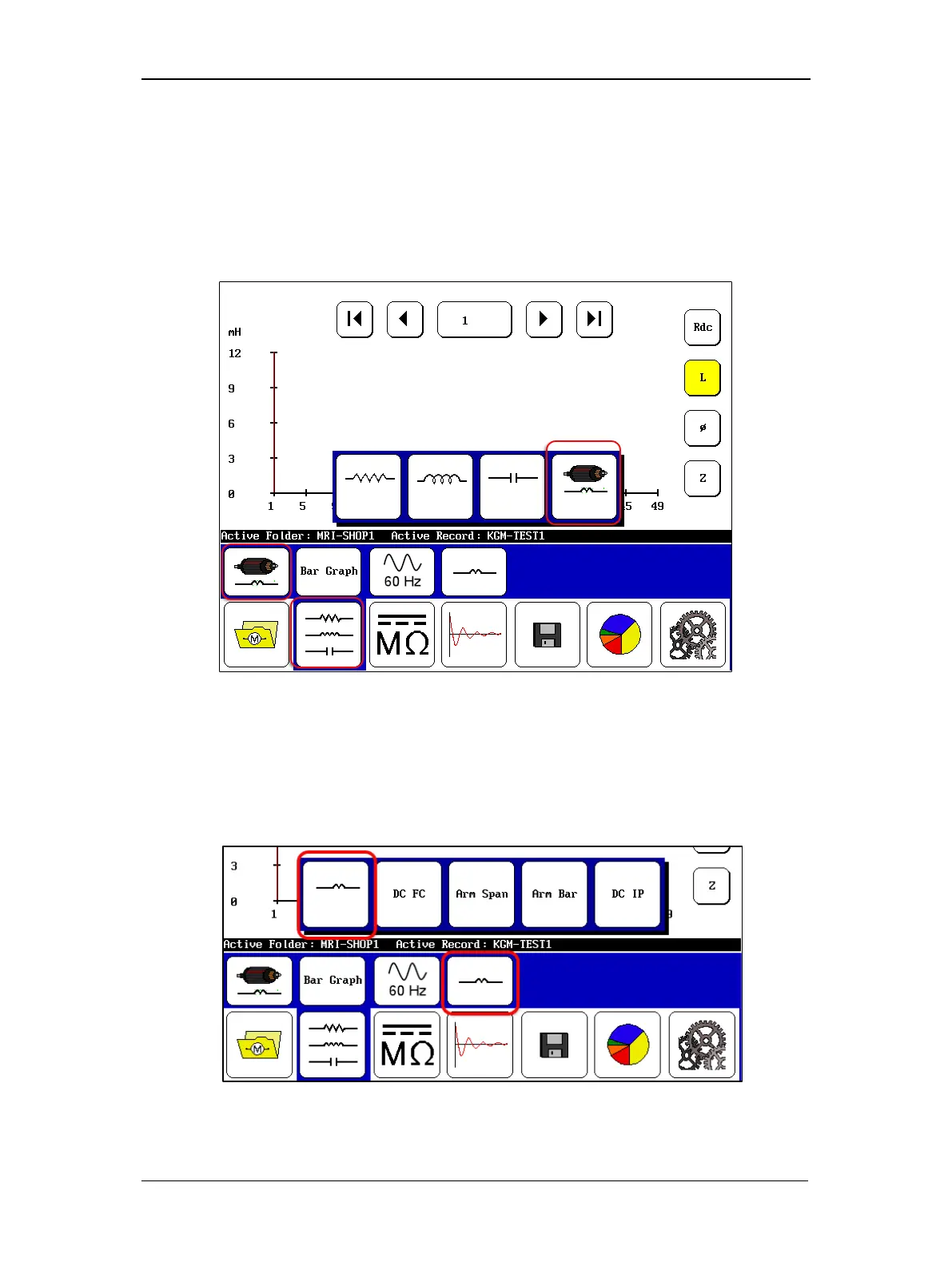 4. Set up the start screen start screen as shown above by touching the RLC Tests mode
