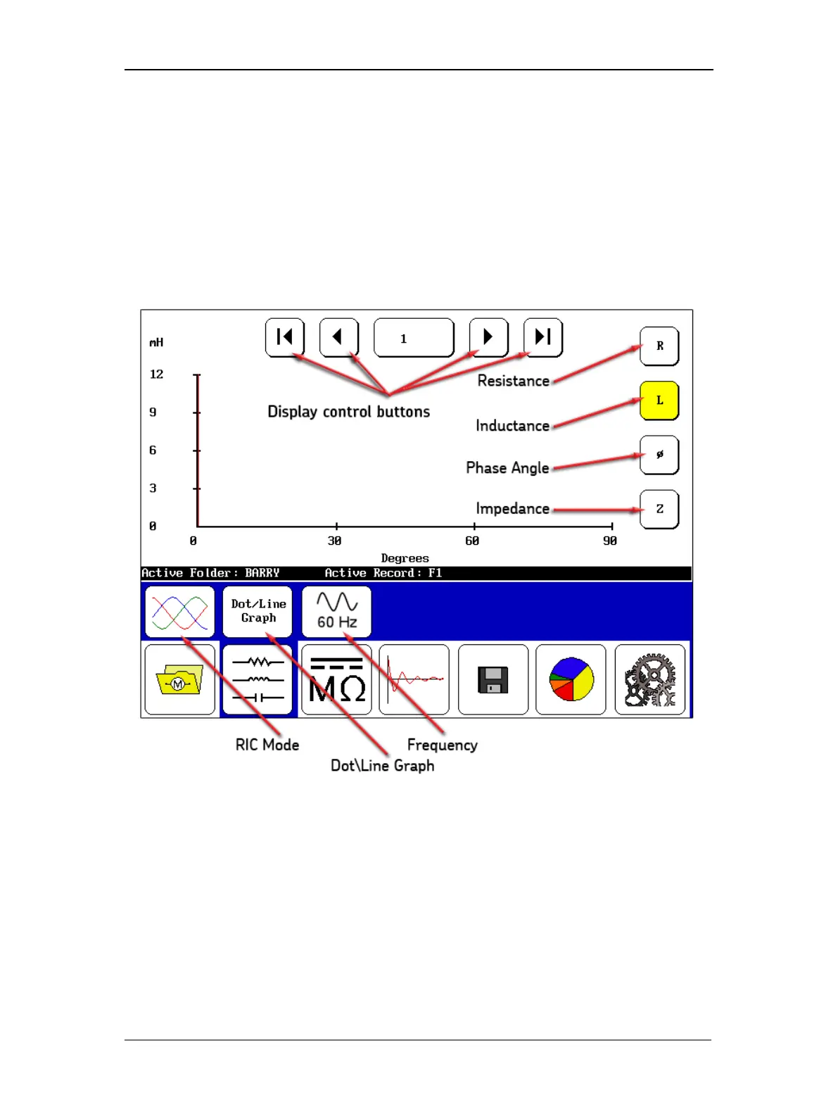 test mode. The Dot\Line Graph icon identifies the display format selected. Touching the icon