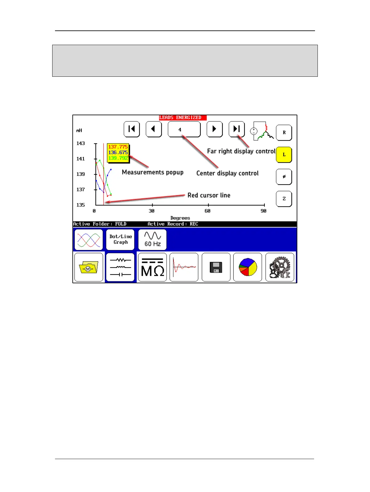 of the recorded test data as you execute tests in sequence. If you touch the center display