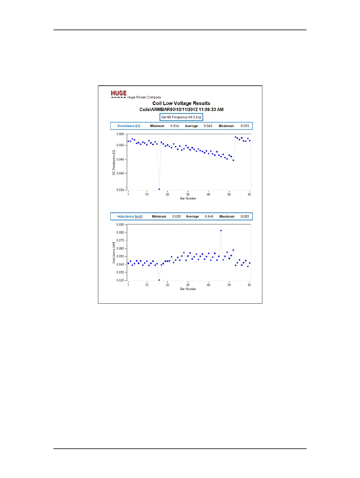 Trending reports for practical values collected during RLC, DC, and Surge testing.
