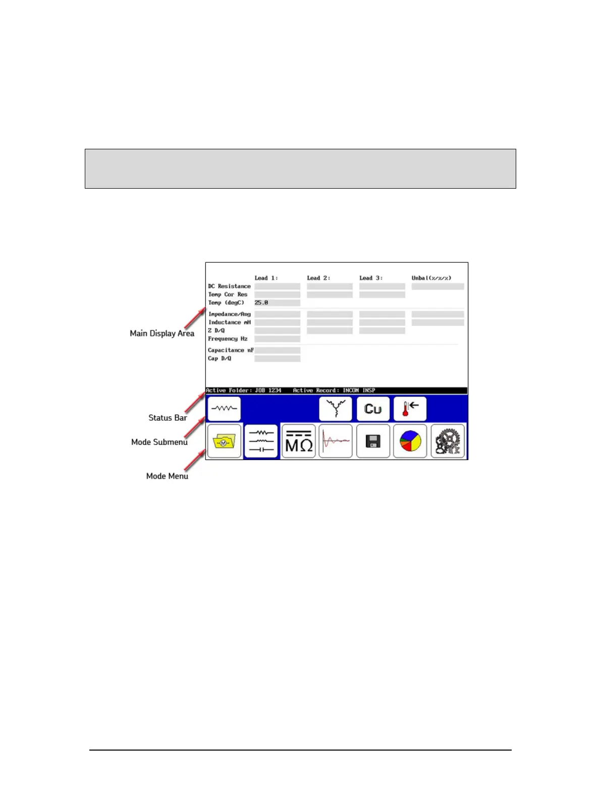 The Main Display Area displays all measurements, test results, and more as you execute your