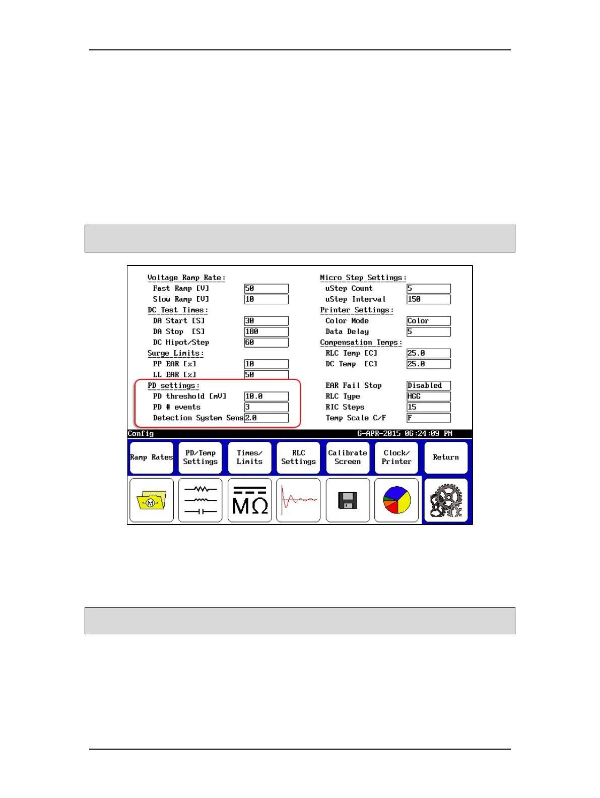 the coil, the baseline noise level of the PD signal, and the surge voltage to be used for testing.