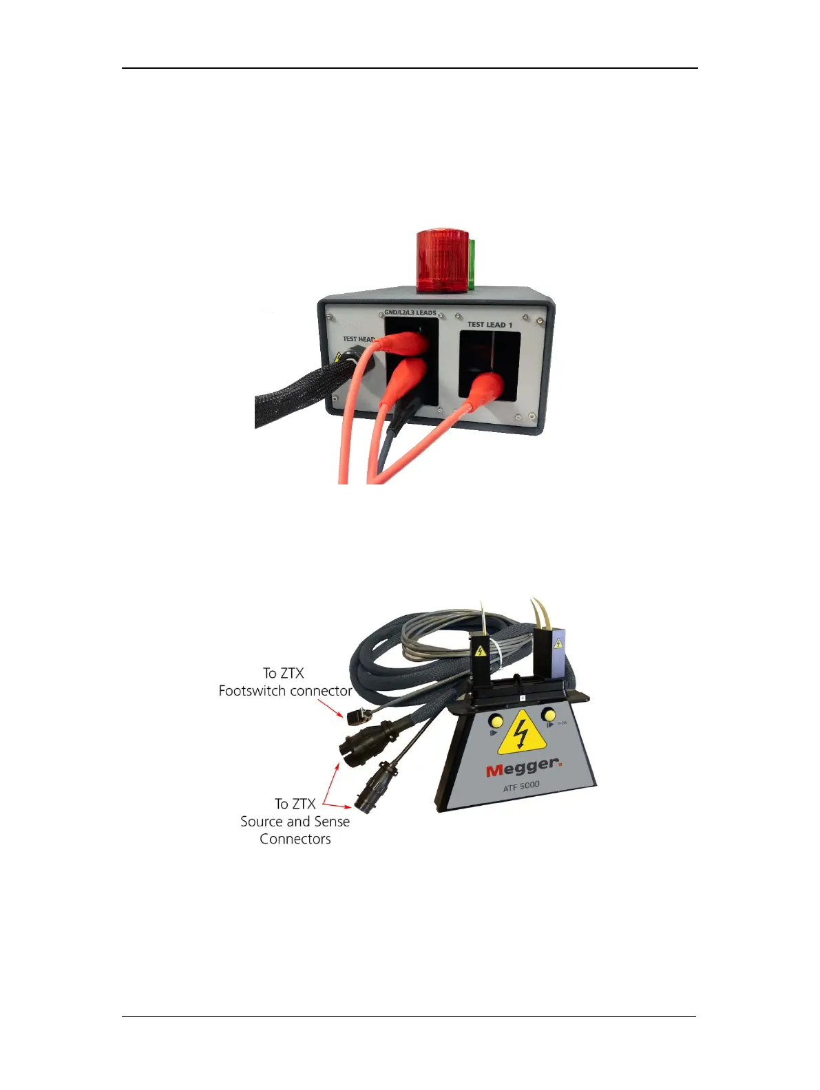 4. Connect the high-voltage test leads of the Baker DX to the Baker ZTX unit’s recessed