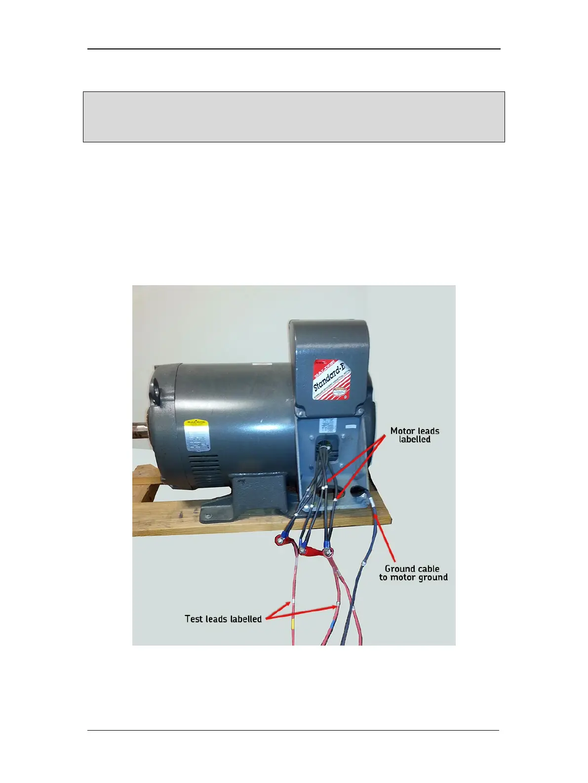 1. Ensure motor leads are properly labeled to provide accurate test data.