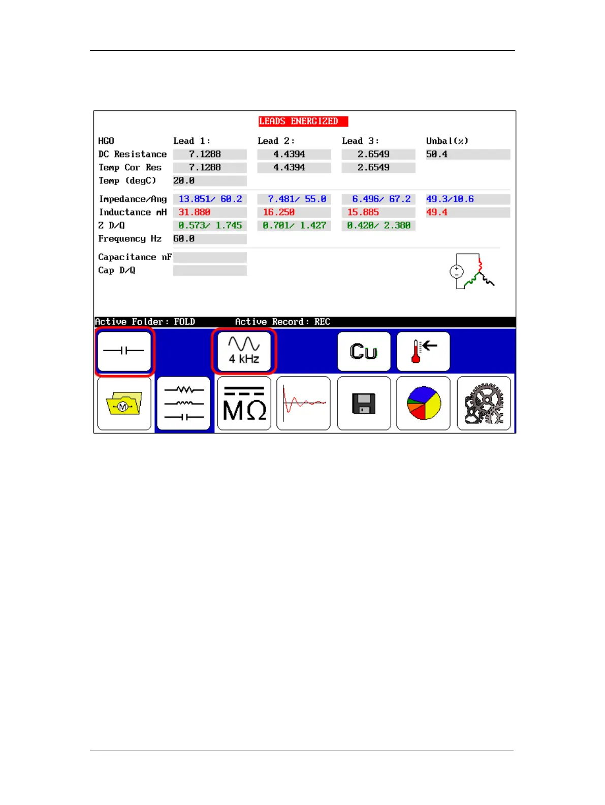 4 kHz frequency icon shown to identify the frequency at which the capacitance tests are