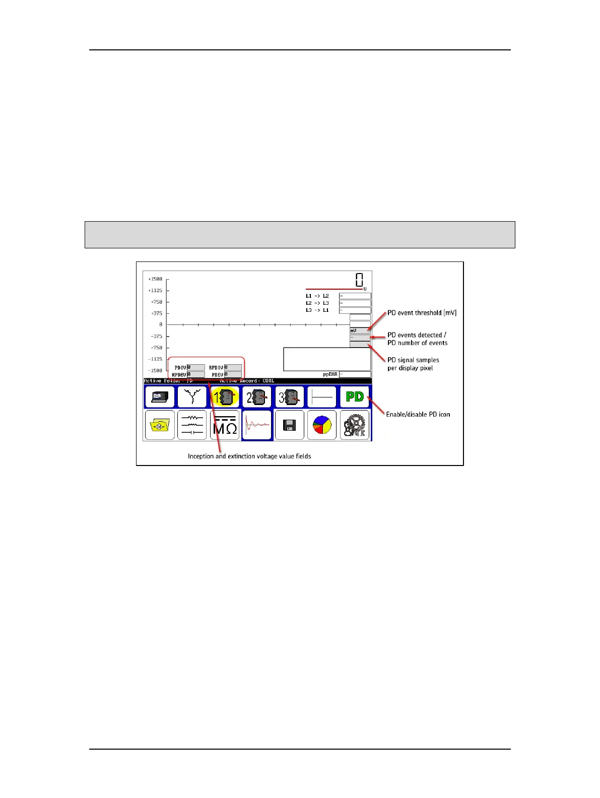 PD events detected value exceeds the PD number of events value, a red PD indicator will appear
