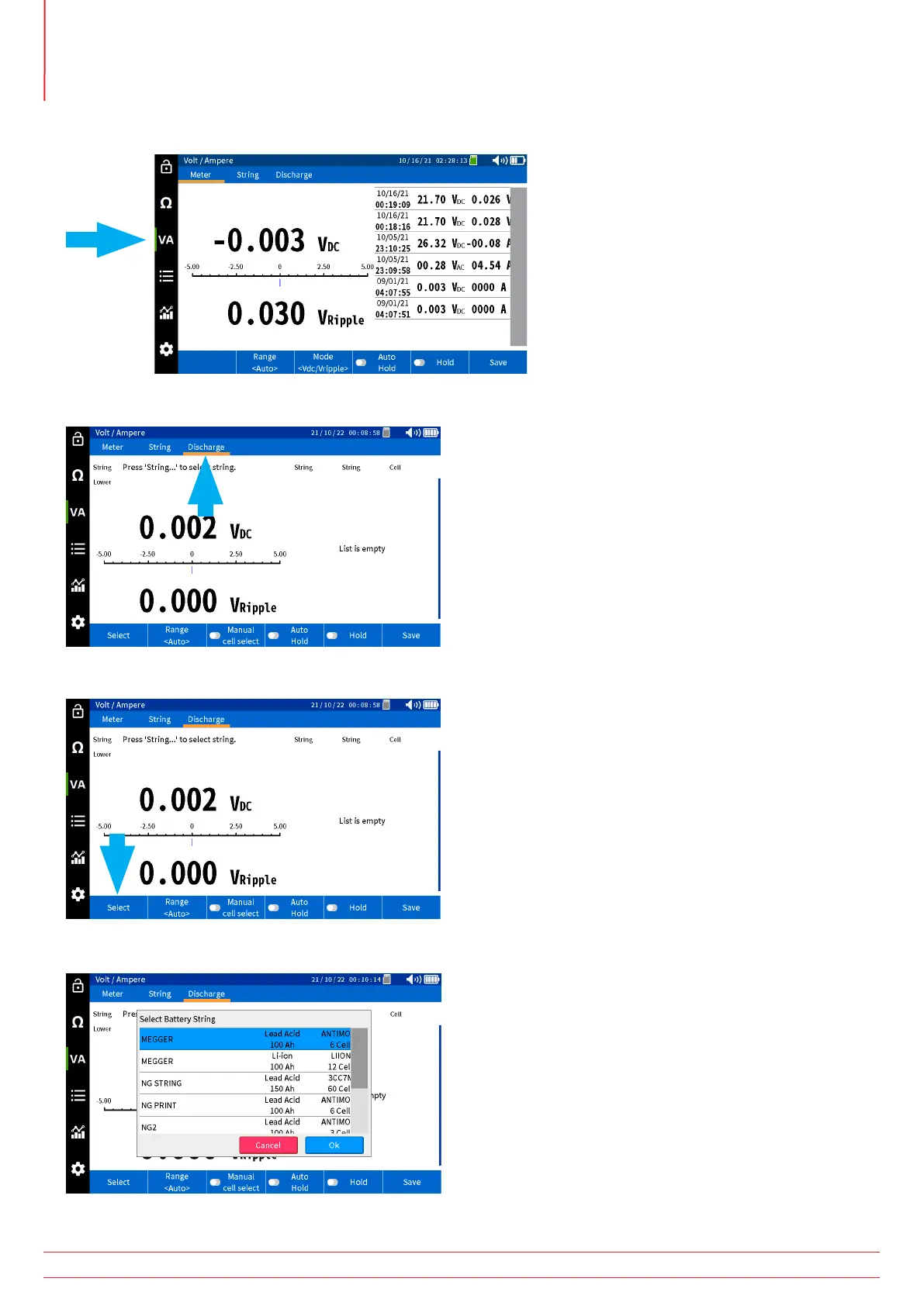 Select desired battery string, then press OK.