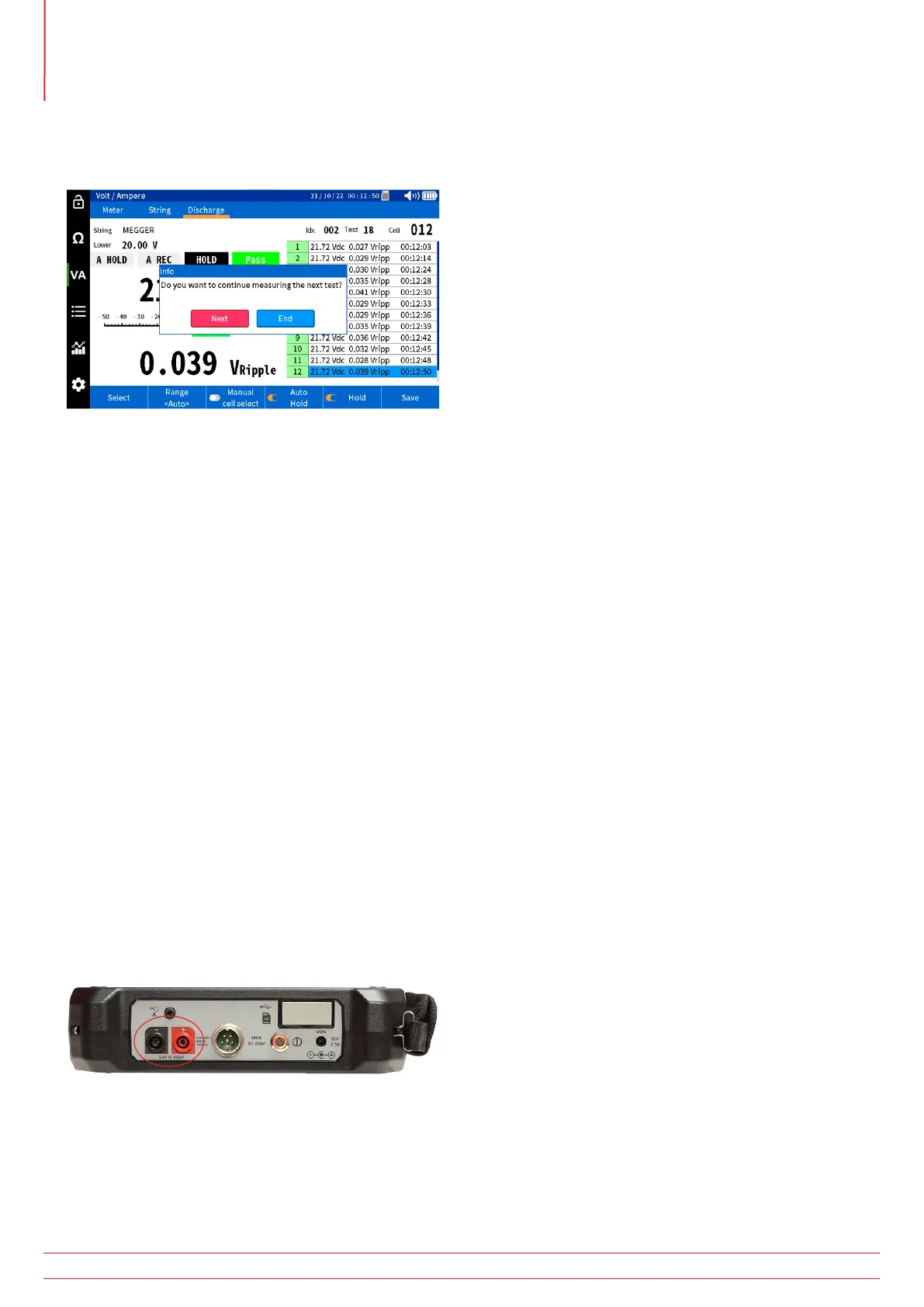 When the end of the string is reached, the unit will prompt the user to either end the test or select “next” to perform