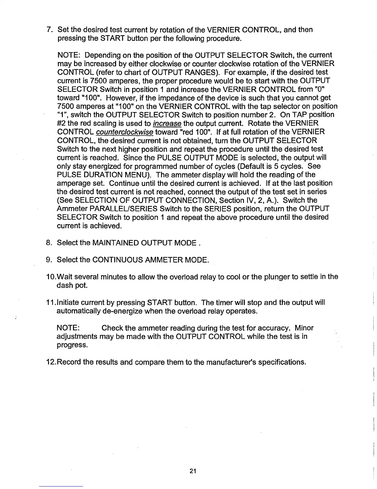 7500 amperes at "100" on the VERNIER CONTROL with the tap selector on position