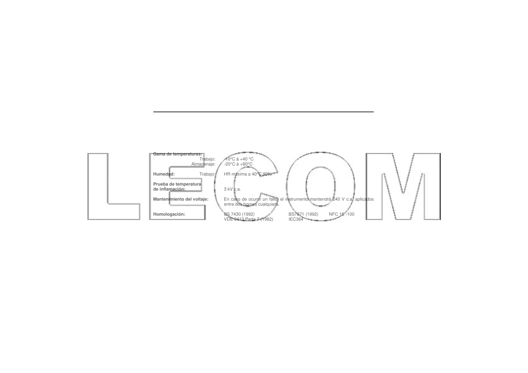 Homologación: BS 7430 (1992) BS7671 (1992) NFC 15 -100