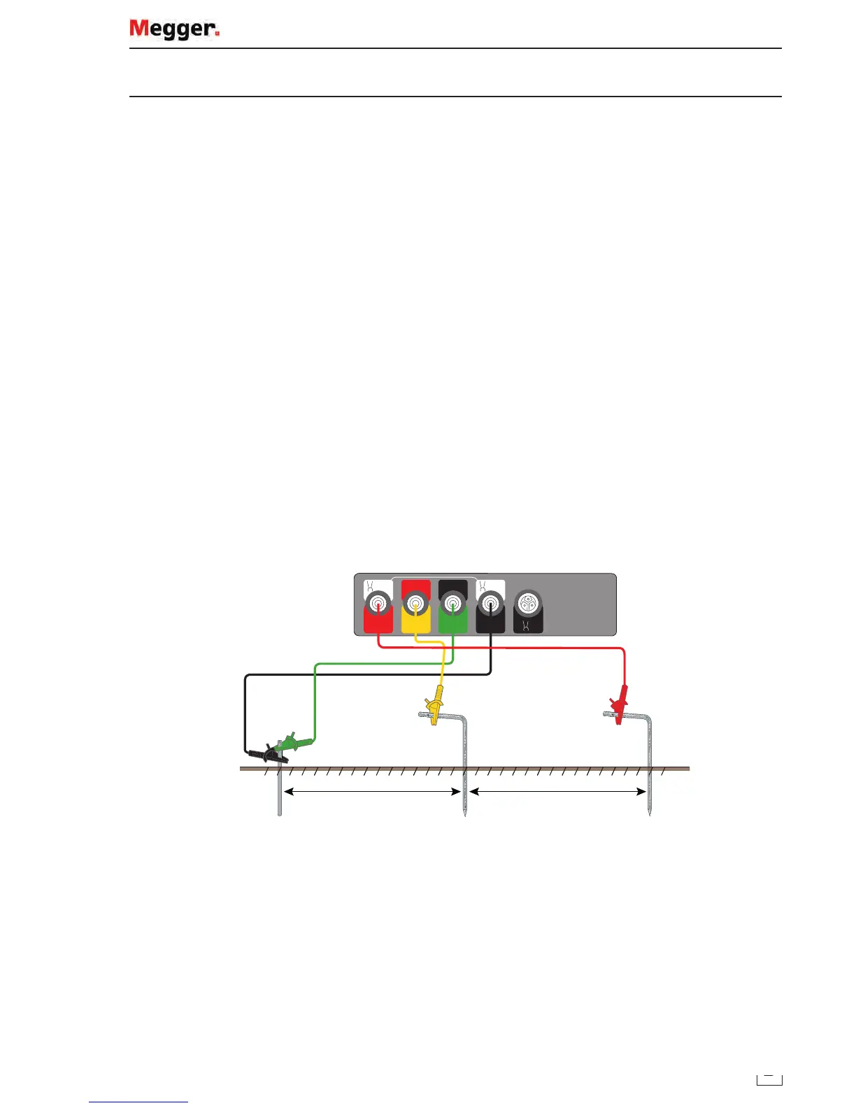 Important: The current stake / pin, potential stake / pin and earth electrode must be placed in a straight line.