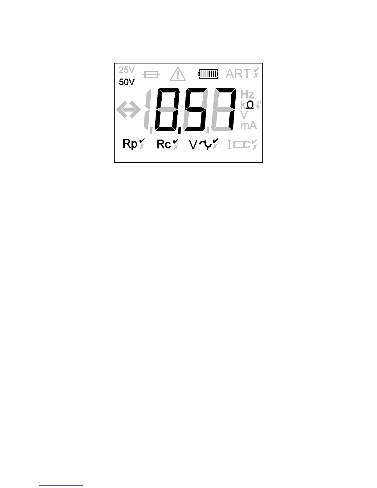 The instrument will display the warning triangle and a voltage over-range condition if the ground