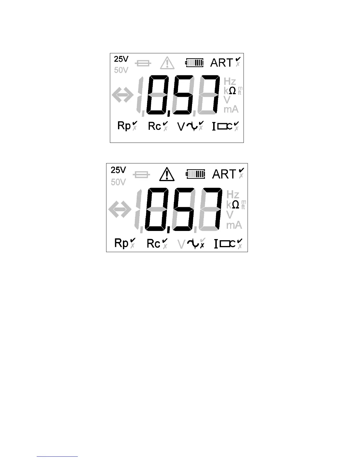 The instrument will display the warning triangle and an excessive noise voltage indicator if the ground