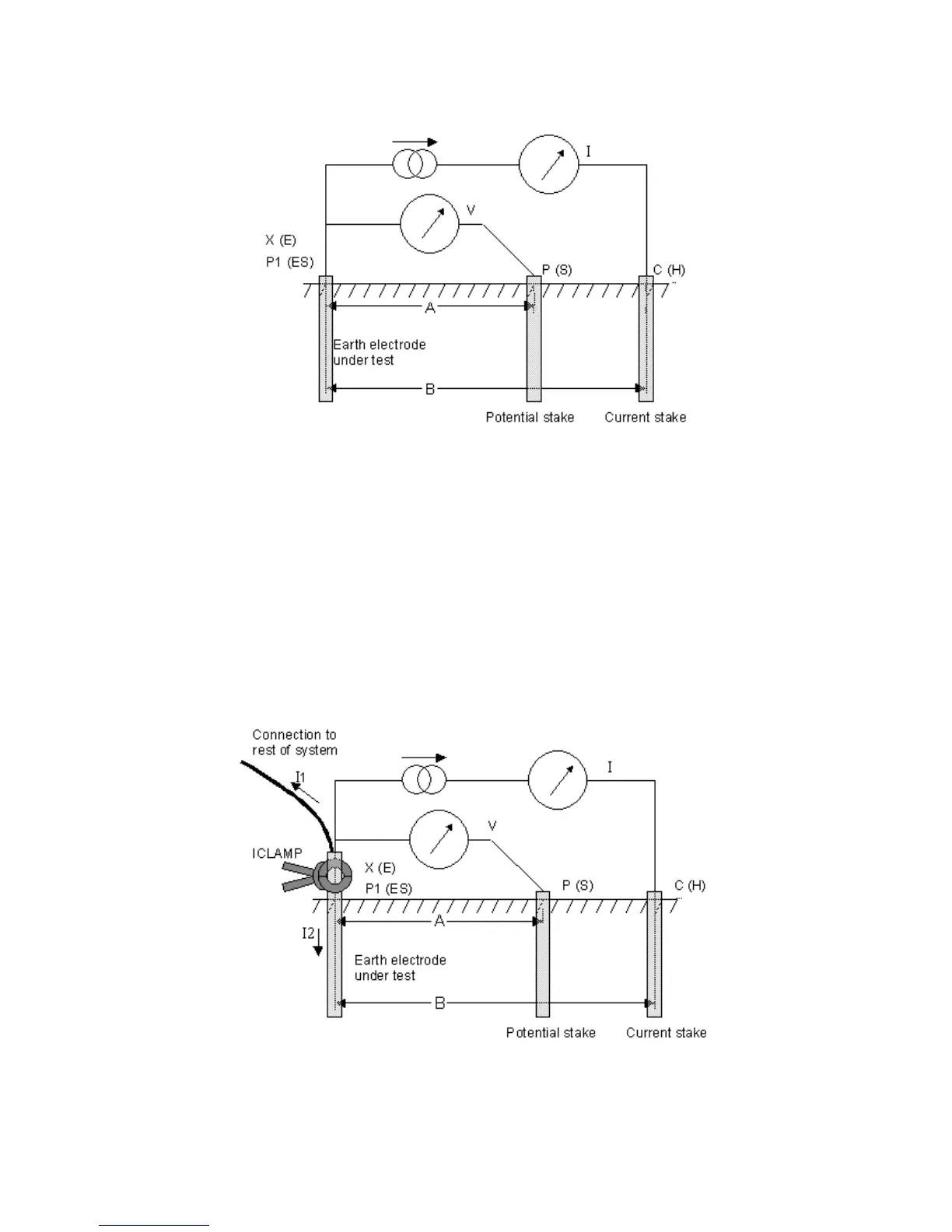 earthing system) and I2 (flowing into the electrode under test, i.e. I=I1+I2. The resistance of the
