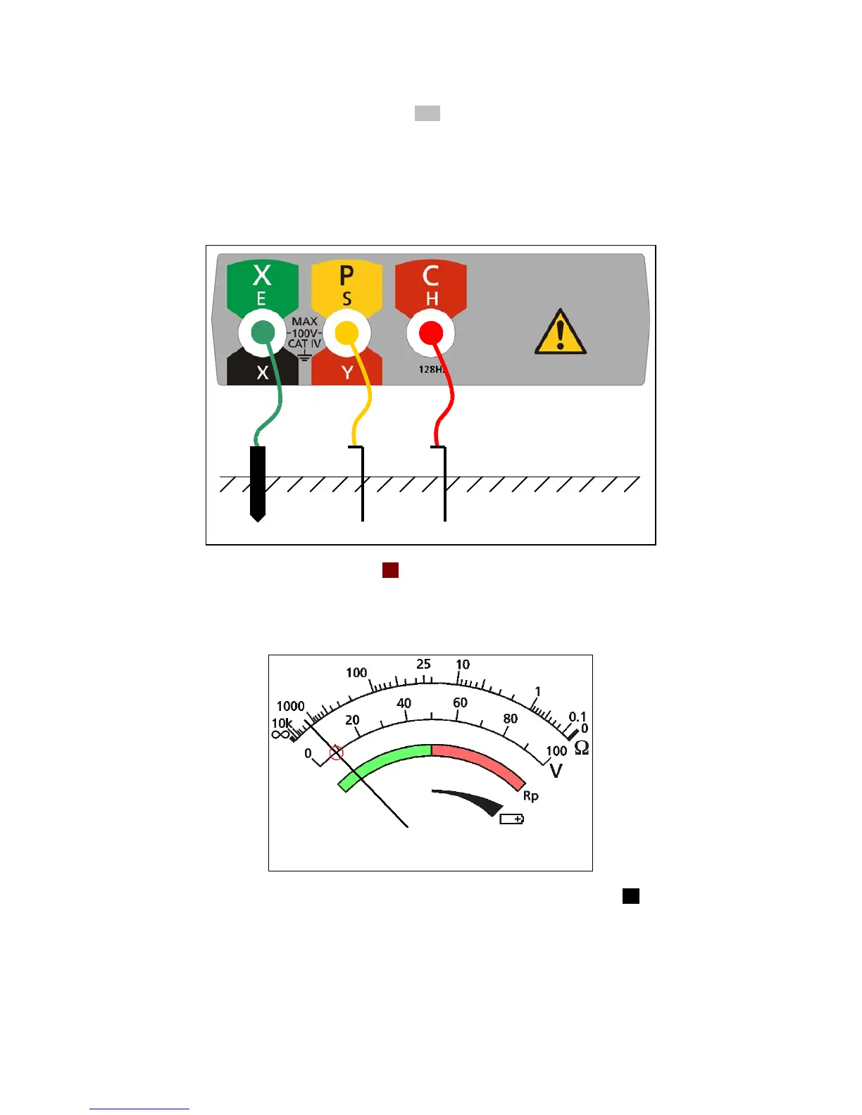 7. The P stake resistance will be indicated on the scaleplate: the needle will move into the green